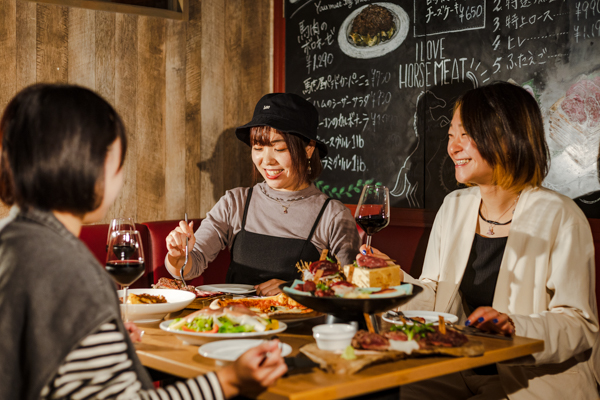 跳ね馬 は馬肉を中心としたお肉料理とがぶ飲みワインが人気です。