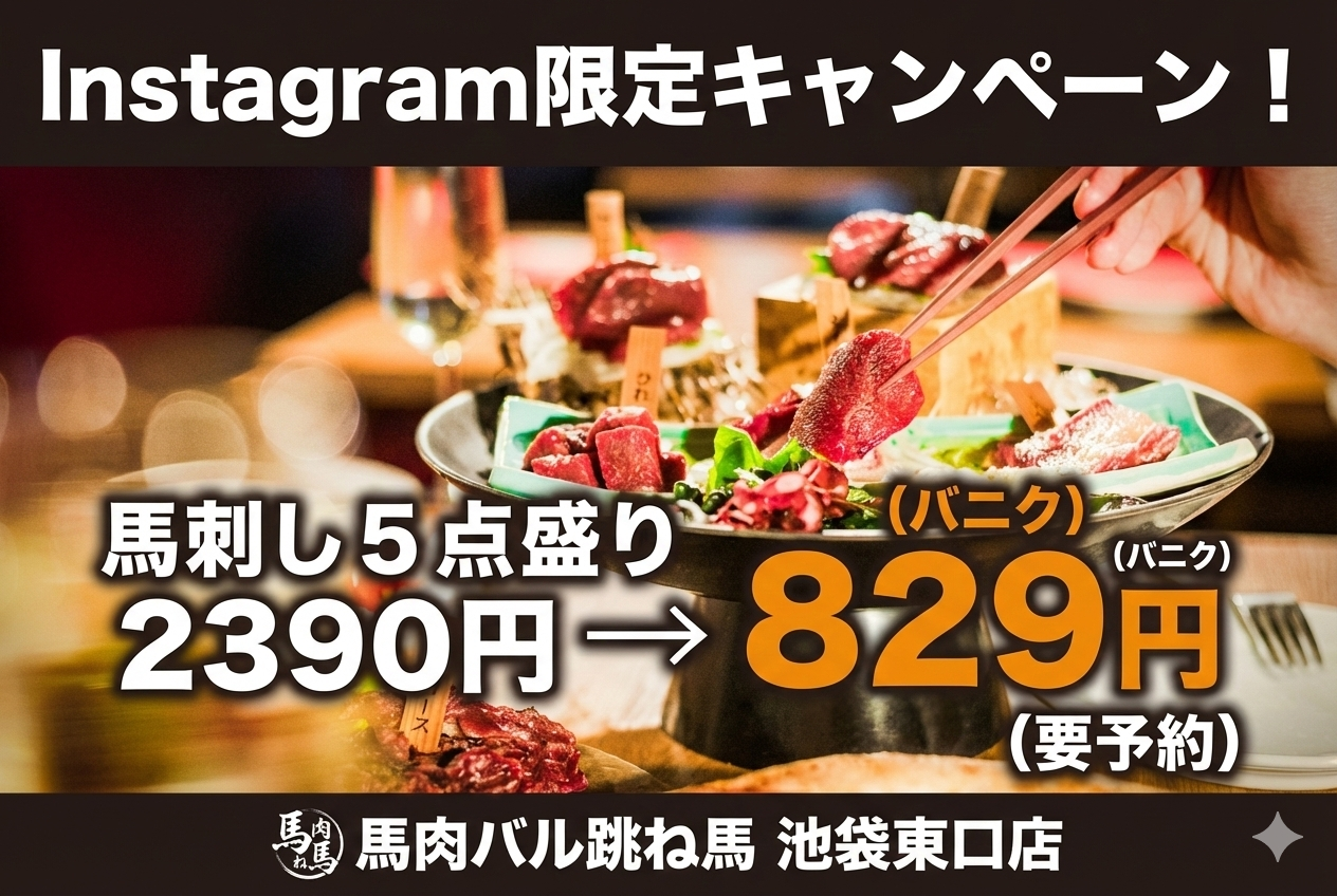 皆さま、こんにちは!馬肉バル跳ね馬 池袋東口店です。